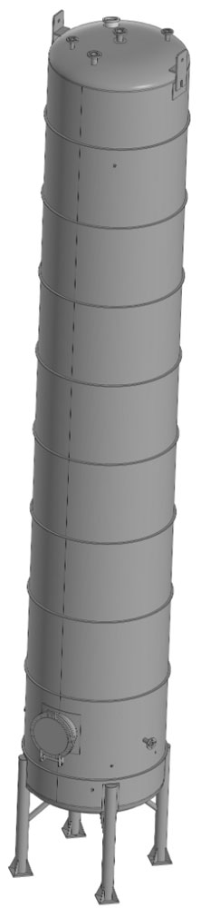 Емкость использована для хранения нейтрального раствора при температуре до 120 °C. До изготовления проверена совместимость среды со сталью AISI 304 и скорректировано расположение двух патрубков под существующую разводку трубопровода. После ввода в эксплуатацию система работает в штатном режиме без корректировок конструкции.